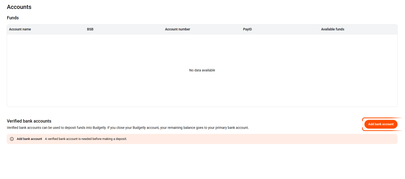You must add and verify your business bank account before you can deposit funds into Budgetly. Only verified accounts can be used for deposits.