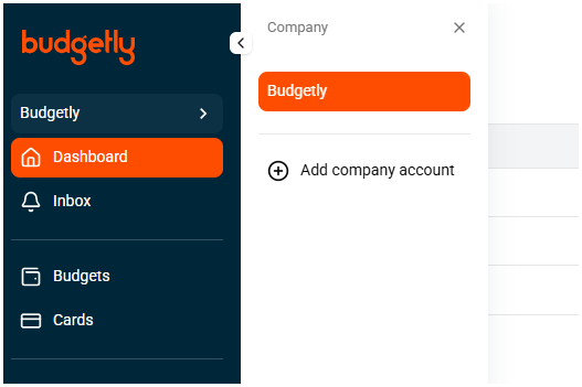 - Click your company name in the sidebar (e.g. “Budgetly” with the
