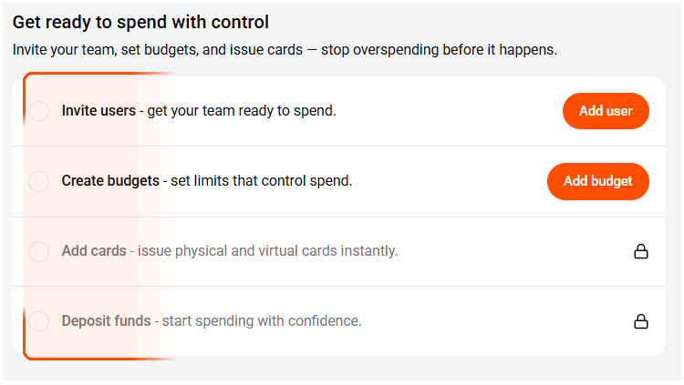 Tip: You can add users and create budgets while waiting for your Spend Account to open.