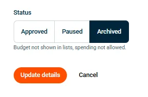 Archiving a budget removes it from your active list without permanently deleting it. This helps keep your budget list tidy while retaining access to old or unused budgets when needed.
