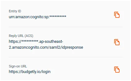- Copy Budgetly config – you will need this when setting up SAML in Entra ID.
